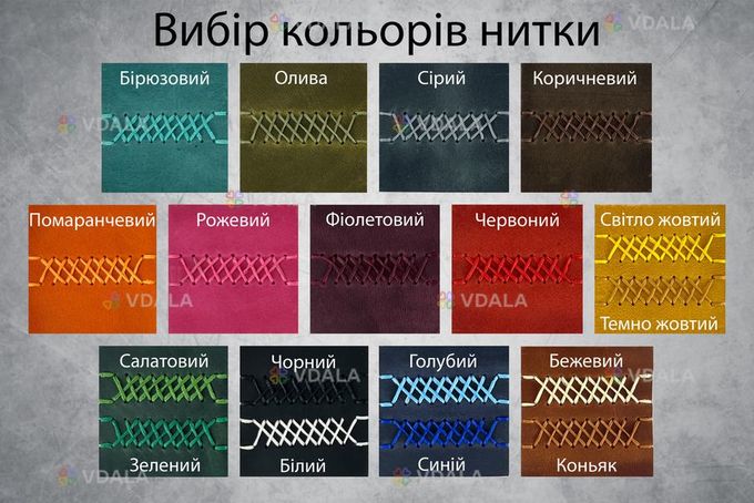 Доступні кольори шкіри і нитки вказані на фото. При замовленні напишіть, який колір ви обрали.