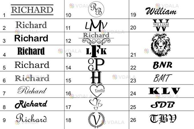 Ви можете обрати монограму з тих, що представлені на фото. Ми також можемо нанести ваше зображення, але тільки у векторному форматі.