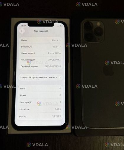 Продам iPhone 11 Pro 64 ГБ. Стан як на фото, є чуть чуть якась плямка на екрані але не заважає в роботі. Повністю все працює, екран оригінальний, в сервісі ніколи не був 063 950 2172