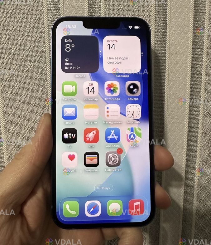Айфон 13 на 128 Гб блакитного кольору (blue). Телефон бу, але в гарному стані, дивіться фото. Функціонал перевірено (камера основна та фронтальна, фейс айді, вайфай, трутон, блютуз, звʼязок, батарея, екран, динаміки). Все працює.