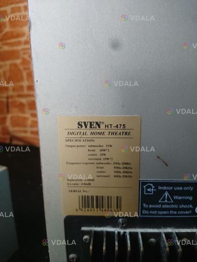 Продаётся аудиокомплекс Sven HT475 (5 колонок + сабвуфер с 6 динамиком) в полностью рабочем состоянии.