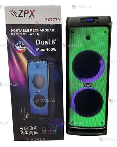 Портативная акустическая система ZPX ZX 7779 — это мощная и универсальная колонка, идеально подходящая для проведения вечеринок, презентаций и других мероприятий. Благодаря двум 8-дюймовым динамикам и твиттеру, она обеспечивает чистое и насыщенное звучание с пиковым уровнем до 400 Вт. Встроенная LED-подсветка на передней панели создает эффектное световое сопровождение, синхронизированное с музыкой, что придает атмосфере дополнительную динамику. Функция Bluetooth позволяет легко подключать мобильные устройства для беспроводного воспроизведения музыки, а наличие USB и SD-картридеров расширяет возможности подключения. В комплект входят два беспроводных микрофона, что делает колонку идеальной для караоке и публичных выступлений. Встроенный аккумулятор обеспечивает автономную работу до 8 часов, а удобная ручка и колеса облегчают транспортировку устройства.