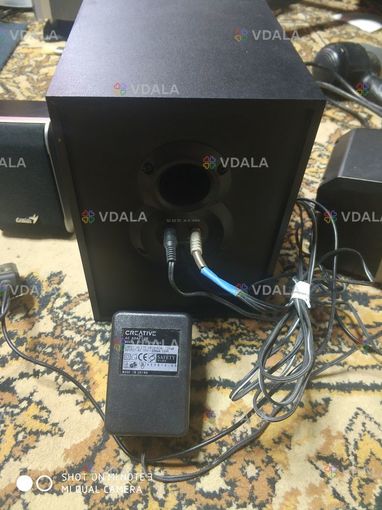 Небольшой сабвуфер, полностью рабочий и комплектный, колонки другой фирмы (см.фото) с выносным пультом управления.