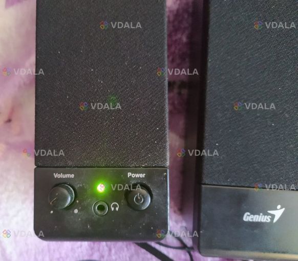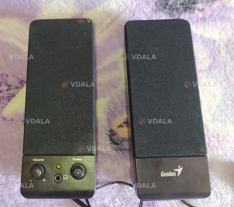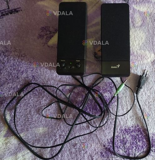 Колонки акустичні Genius SP-S110. Мають зручні кнопки вмикання/вимикання та регулювання гучності на лицьовій панелі, знизу є прогумовані ніжки для запобігання ковзанню. Також є роз'єм під навушники. Робочі, у гарному стані.