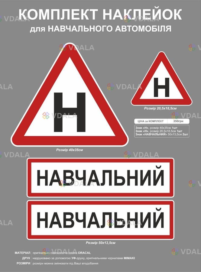 Комплект наклейок наліпок на навчальний автомобіль. Підходить для автошкол