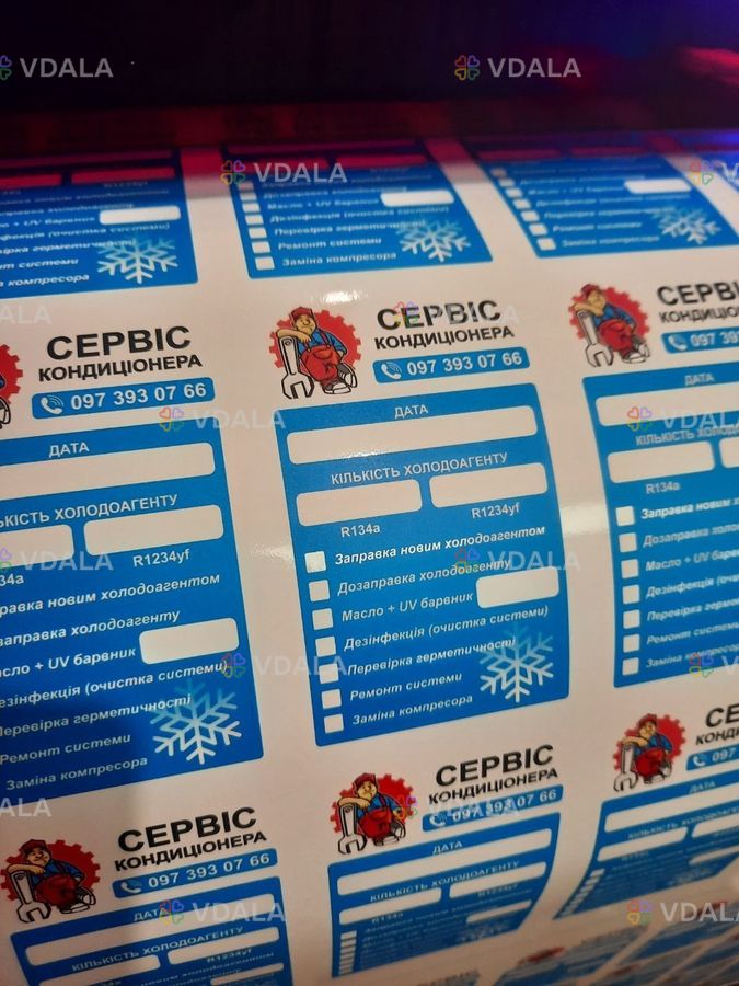 Брендуємо наклейки для обслуговування кондиціонера авто, сервісна наклейка обслуговування кондиціонера.