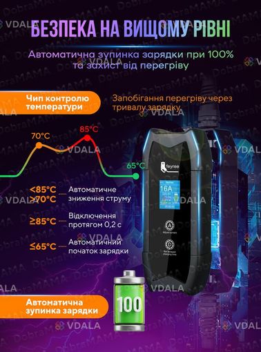 Зручність використання: Інтуїтивно зрозумілий інтерфейс та компактні розміри роблять зарядку легкою і зручною у використанні.