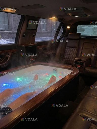 Коштує така розкіш 9999$. Лімузин оснащений системою забору та зливу води. Джакузі переміщується і складається у разі необхідності та перетворюється у звичайний салон.