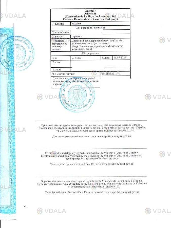 Апостиль на свідоцтво розлучення