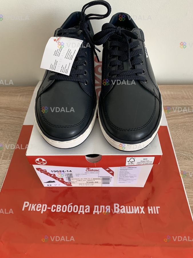Чоловічі туфлі-кросівки rieker antistress' в упаковці, розмір 42, дуже гарний темно синій колір. Нові, довжина устілки 28 см. Мякенькі, легенькі, комфортні. Фабрика в Марокко