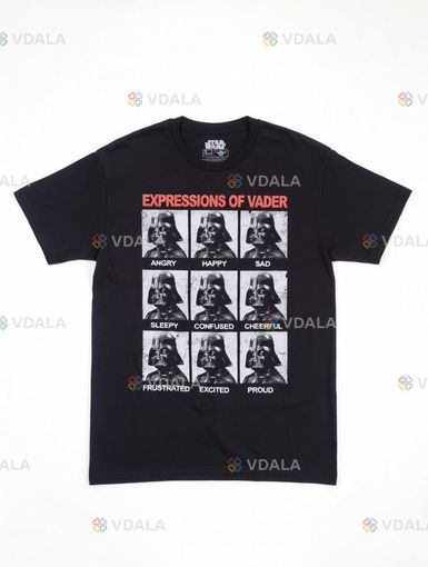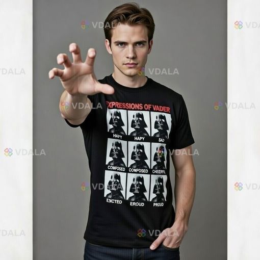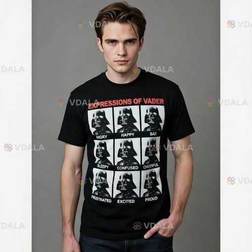 Представьте: Дарт Вейдер — человек (ну, почти), который прошёл через галактические драмы, предательства, пафосные монологи и проблемы с терморегуляцией из-за костюма — вдруг решил показать, что у него тоже есть спектр чувств. И это не только «гнев» и «удушение Силой». На этой футболке он демонстрирует всю палитру: от лёгкого сарказма до экзистенциального «я устал, я ухожу».