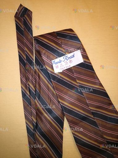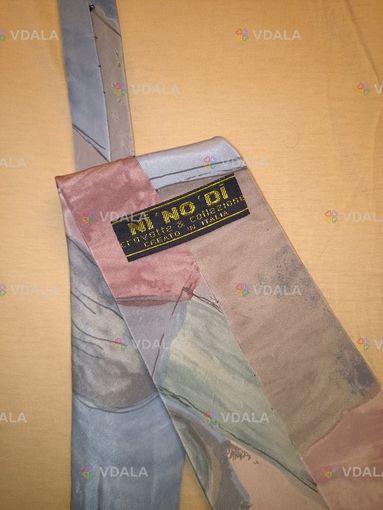 Три італійські краватки різних кольорів та візерунків. Одна краватка має червоно-синій смугастий візерунок, друга - коричнево-чорні смуги, а третя - абстрактний сірий та рожевий візерунок.