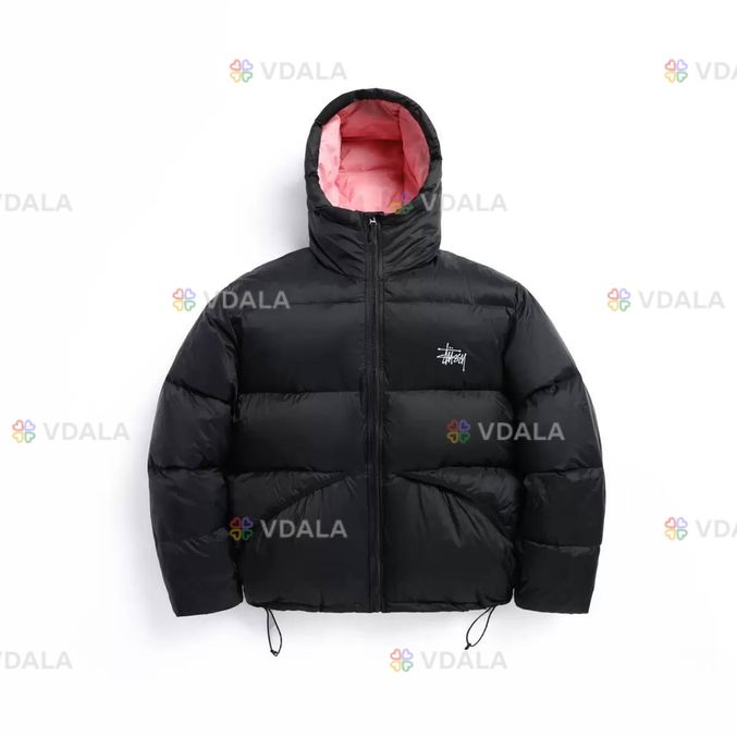 Зимний пуховик (унисекс) с тёплым капюшоном — чёрный верх, подкладка: серая или розовая
