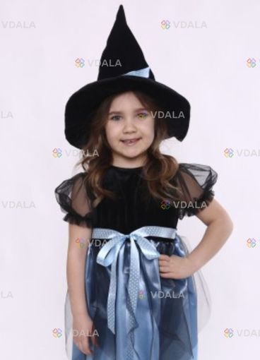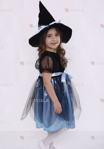 платье комбинированное из разных видов ткани, лиф из основной ткани на равязке, рукав-фонарик из сетки, атласная юбка дополнена вставками из фатина, пояс из атласной ленты в горошек контрастного цвета;