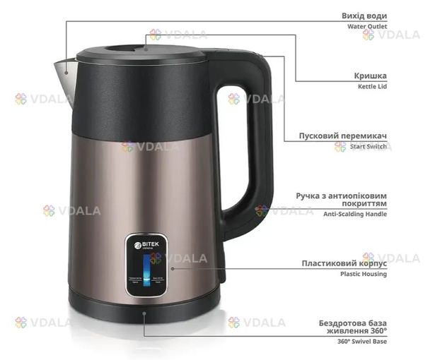 Чайник електричний 2,5л 1800Вт bitek bt-7955