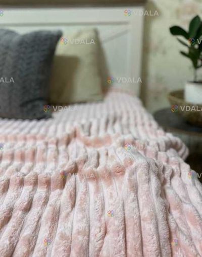 М'який плед з мікрофібри 200х220 см велика смужка - пудра. Євро. Koloco