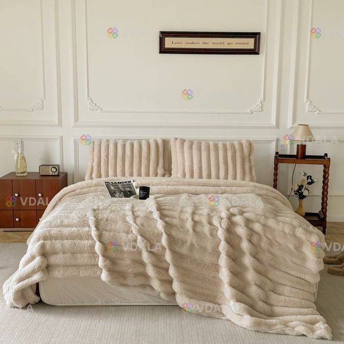 Вишуканий двосторонній плед-покривало з густим теплим ворсом зі штучного хутра з велюровою фактурою. Зворотний бік стрижений ворс.