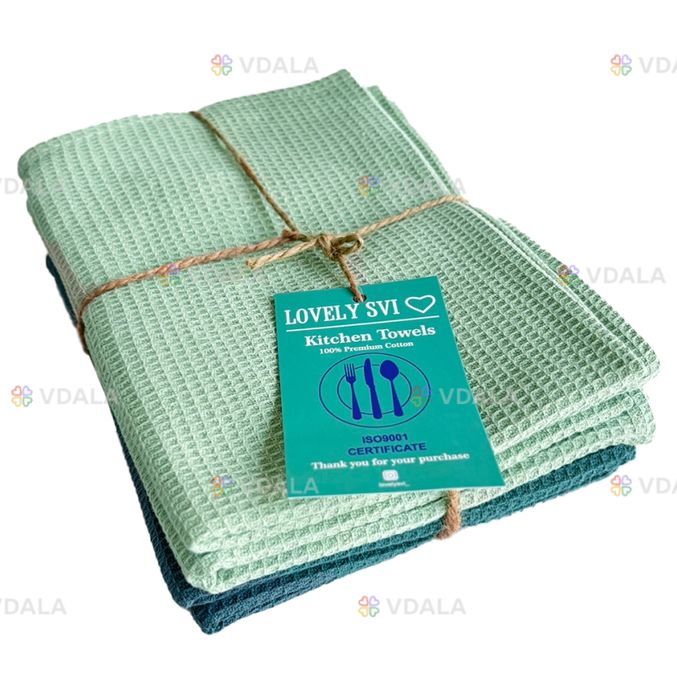 Набір кухонних вафельних рушників 4 шт: 45 x 63 см, 100% бавовна Мікс Зелених