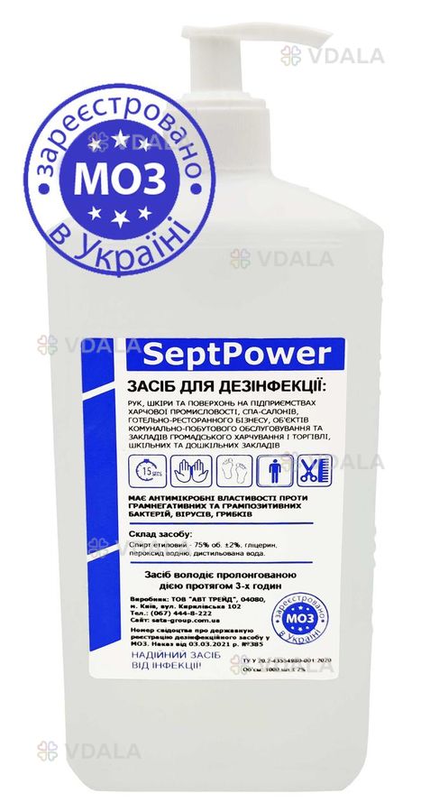 Антисептик для рук (дезинфицирующее средство) SeptPower 1 л с дозатором