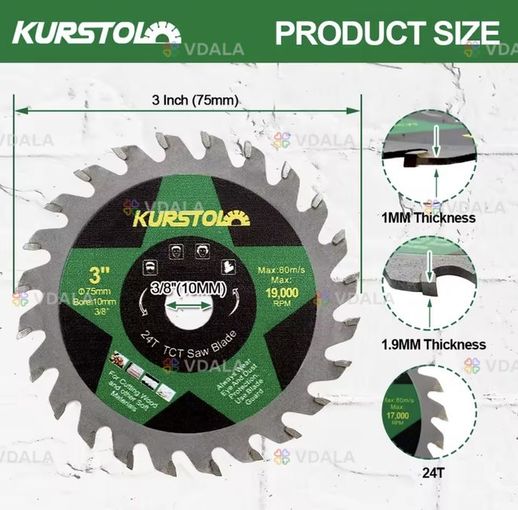 Купить Новое Фирменное Полотно дисковой пилы KURSTOL TCT Saw Blade 24T 75 мм 3" дюйма из Твердого сплава