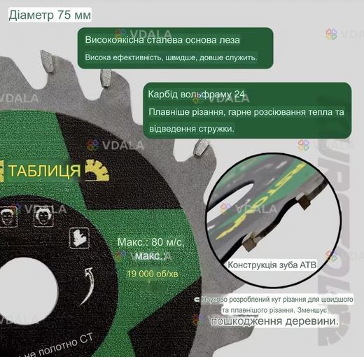 Диск Пильний tct Saw Blade kurstol 75 мм 3" 24T Твердый Сплав Купить