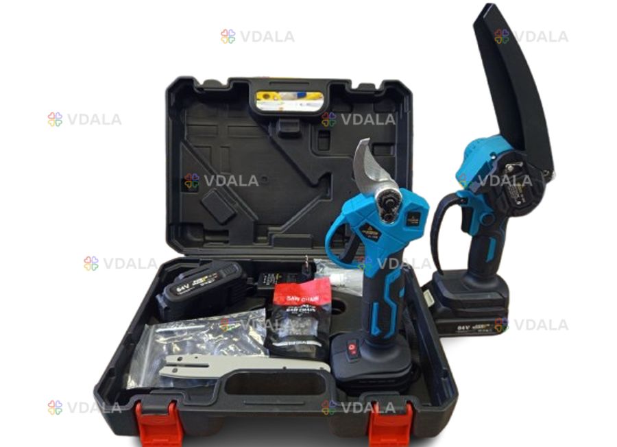 Набор садовой техники CB-3998 (аккумуляторные секатор и цепная пила, 64V, 2 аккумулятора, в кейсе)