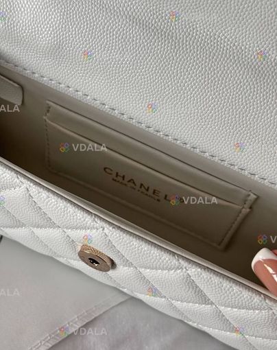 Chanel Mini Flap Handle Bag White Caviar with Silver -