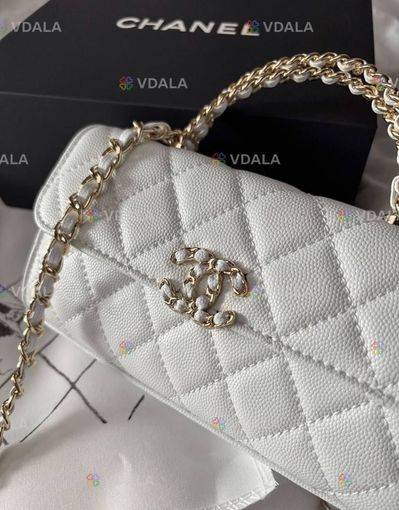 Chanel Mini Flap Handle Bag White Caviar with Silver - девочки получили новый премиальный экземпляр! Сумочка в белом цвете, максимально выделяется! Уникальность она такая!)