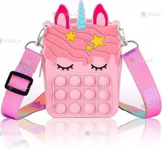 Сумка Alitek дитяча силіконова через плече Єдиноріг Поп Іт Рожевий