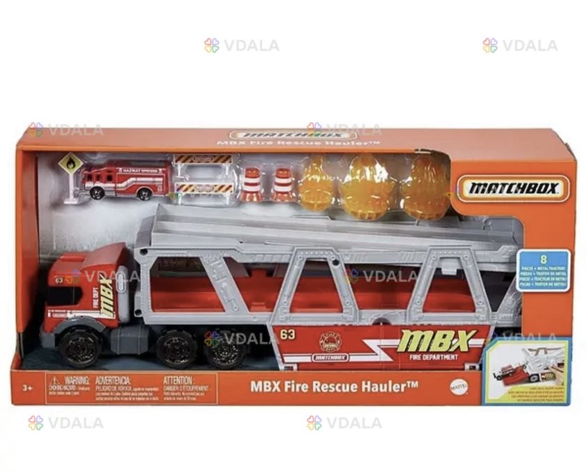 Цей великогабаритний Пожежно-рятувальний автомобіль Matchbox Fire Rescue Hauler має суперфункціональні можливості. Він використовується для перевезення пожежної та рятувальної техніки. Знімний дворівневий причіп оснащений спеціальними пандусами для навантаження та розвантаження техніки. Усього міститься до 16 автомобілів масштабу 1:64 (наприклад машинки Hot Wheels). У комплекті з автовозом іде металева пожежна машинка масштабу 1:64. Дорожні знаки, огорожі та тематичні аксесуари можна зберігати та перевозити у спеціальному відсіку. Ця чудова функціональна іграшка стане чудовим подарунком для хлопчиків від 3-х років.