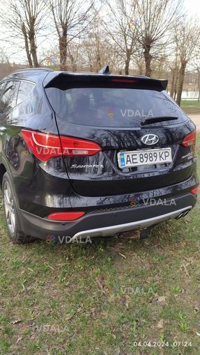 Продам Hyundai Santa FE Рік випуску: 2013, Пробіг: 141 км, Бензин. Основні характеристики: Об'єм двигуна: 2.0 l., Потужність: 264 кВт/360 к.с., Коробка передач: Автоматична/6и-ступ., Тип кузова: Кросовер, Колір: Чорний/Металік, Кількість дверей: 4/5, Кількість місць: 5, Диски: R19, ABS, ESP, Центральний замок, AUX, USB.