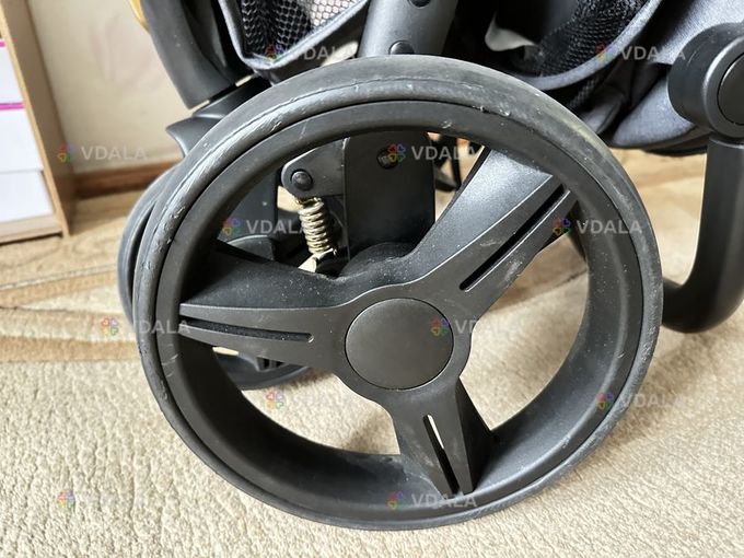 Шасі зроблено з високоміцного легкого алюмінію. Усі чотири колеса легко знімаються, щоб їх можна було помити. Поліуретанові колеса не бояться проколів, передні меншого діаметра є поворотними та полегшують маневрування коляски у вузьких місцях. Зручна гальма педаль розташована між задніх коліс.