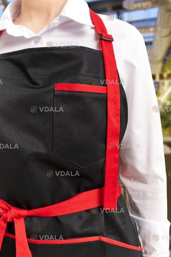 Фартух кухарський/офіціанський із нагрудником водовідштовхувальний, чорно/червоний