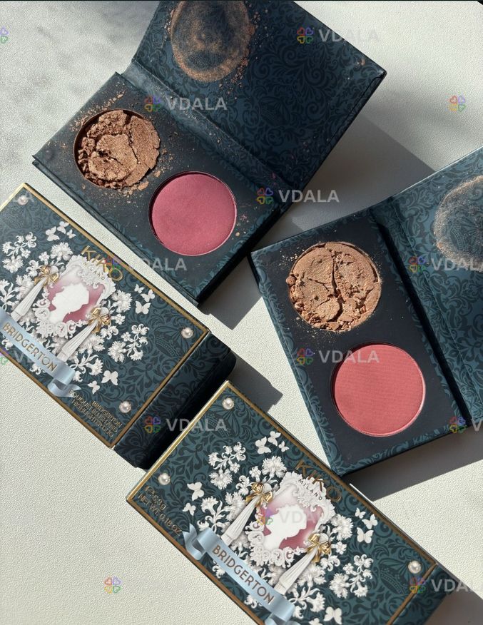 Рум'яна та хайлайтер 2 в 1 Bridgerton Kiko Milanо. Натхненна Shondaland і Bridgerton's Netflix, ця чарівна палітра поєднує м'які матові рум'яна з сяючим хайлайтером.