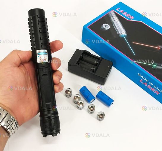 Мощная лазерная указка синий лазер аккумуляторный дальность до 15км YX B015 5 насадок
