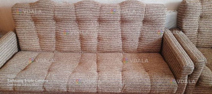 Цей м'який диван з кріслами-крісло-ліжками буде чудовим доповненням до вашого інтер'єру. Меблі в доброму стані, зручні та практичні. Можна використовувати як повсякденні меблі для вітальні або спальні.