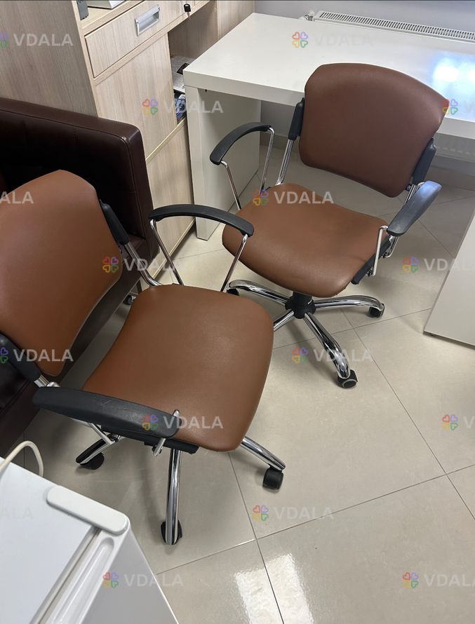 Зручні офісні крісла в доброму стані. Вони мають регульовані спинки та підлокітники, що забезпечує комфорт під час роботи. Крісла можуть бути корисними як для офісу, так і для домашнього використання.