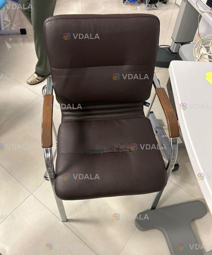 Це вживаний офісний стілець коричневого кольору. Стілець має м'яке оббивання та металевий каркас. Він може бути зручним для використання в офісі або вдома. Стілець має регульовану висоту та колеса, що дозволяє легко пересувати його по приміщенню.