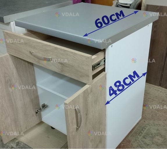 Удобная компактная кухонная тумба . Ширина 60см. Высота 86см НОВАЯ. Выдвижной ящик, съемная полка, регулируемые ноги.(10см). Качественная столешница с торцевыми алюм. планками ,защита от влаги. Фото реальные, сть в наличии. Самовывоз ул. Каунасская ,Левый берег. есть доставка на адрес от 500грн. ПО ПОЧТЕ НЕ ПЕРЕСЫЛАЮ.