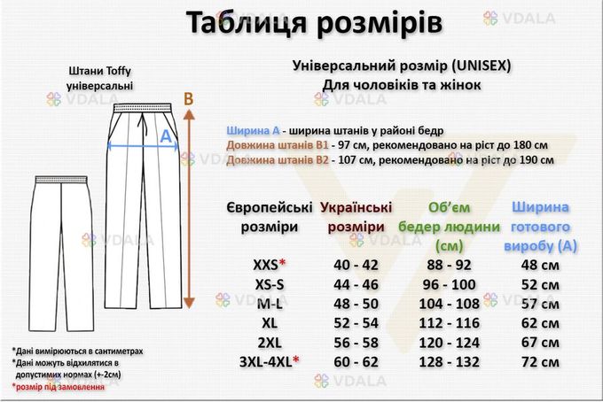 Розміри: XXS | XS-S | M-L | XL | XXL | 3XL-4XL