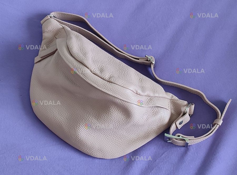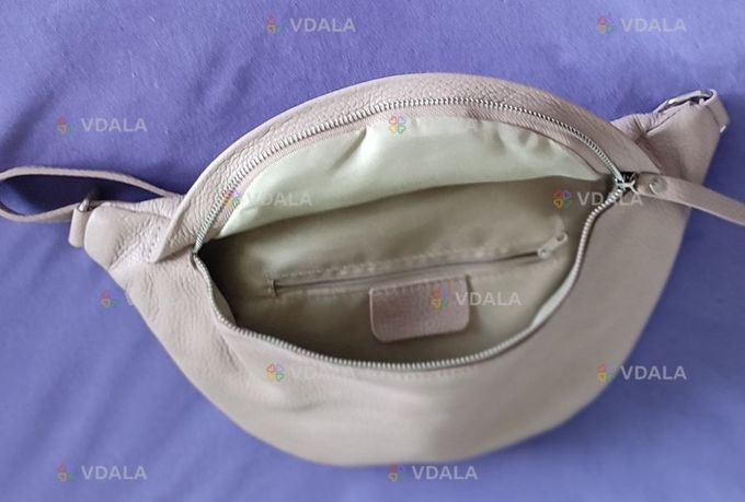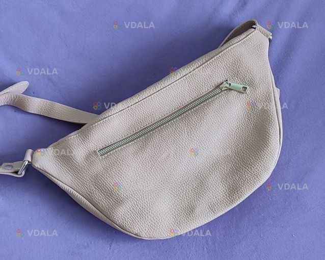 Новорічна знижка, тільки тиждень! Жіноча поясна сумка-бананка з натуральної шкіри. Колір - пудровий нюд.36 х 21 см. застібки-блискавки. Ремінь регулюється. Нова без бірок.