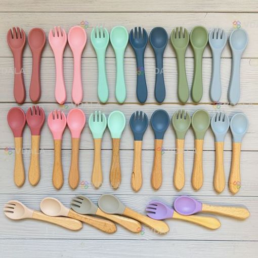 Прибори ( ложка+ виделка) повністю силіконові та силіконові з дерев'яними ручками- 50 грн. (При оплаті на рахунок ФОП)