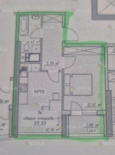 Вид сделки: Продам Квартиру 37 м², 1 комн., 12 этаж.
