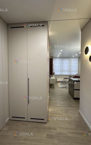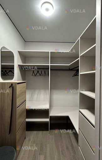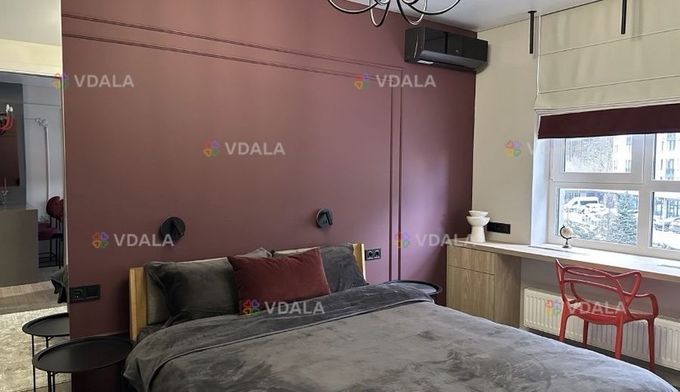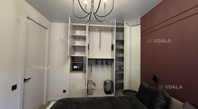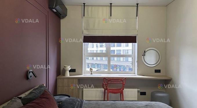 Кухня-студія, окрема гардеробна кімната, затишна спальня з робочим місцем і вбудованою шафою.