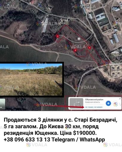 • До станції метро Видубичі 30 км, с. Старі Безрадичі, Обухівський район.