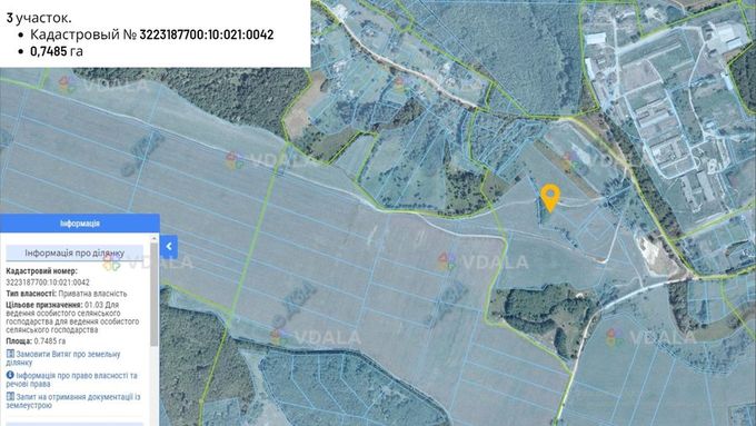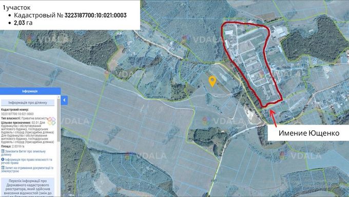 • У власності ділянки 2,03Га (Для будівництва та обслуговування житлового будинку, господарських будівель та споруд (присадибна ділянка))