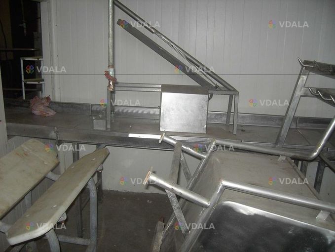 А также вспомогательное оборудование: шпарчан, санитарные устройства бесконтактной мойки и стерилизации ножей, стол для зачистки шкур ,машина для очистки желудков,