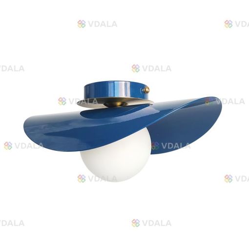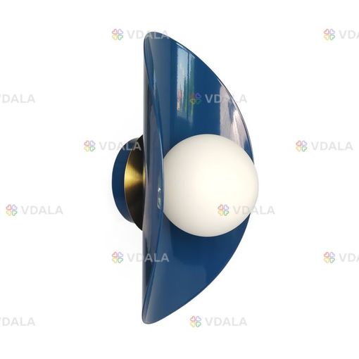 Його латунний абажур із шовковистим блиском делікатно обіймає матову сферичну лампу, створюючи асоціацію з місяцем у серпанку.