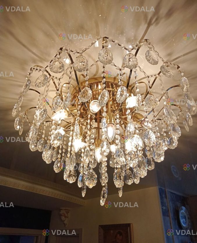 Люстра позолочина з з прозорими підвісками дуже гарна в класичному стилі стан майже нова дуже м'яке приємне світло