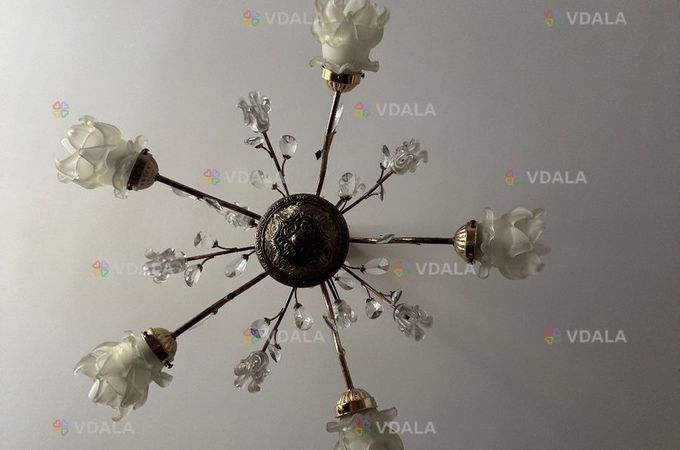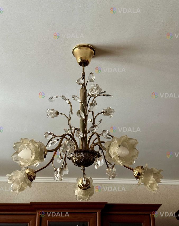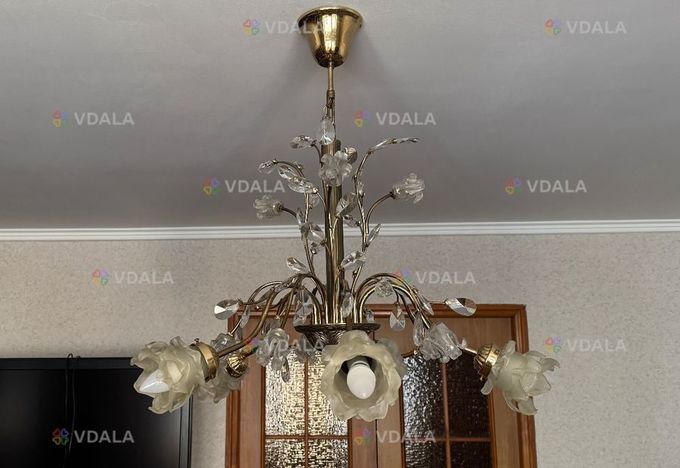 Чудова кришталева люстра з 5 лампами. Виготовлена з металу та кришталю. Підходить для прикрашення вітальні, їдальні чи спальні. Надає приміщенню розкішного та елегантного вигляду.